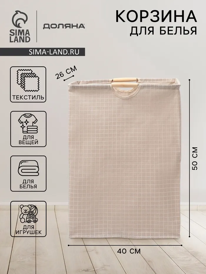 Корзина для белья Доляна «Квадраты», 40×26×50 см