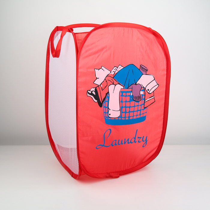 Корзина-сетка «Большая стирка», складная, 32×32×52 см, красная