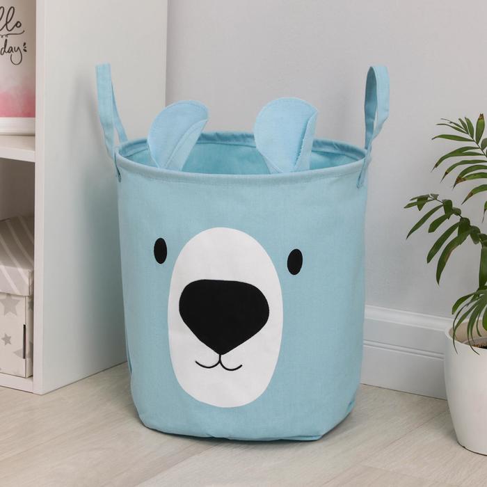 Корзина бельевая текстильная «Мишутка», 36×35 см, голубая