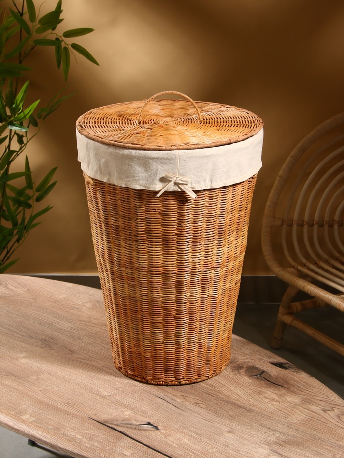 Корзина для белья с крышкой и тканевым подкладом, 35×35×50 см, ротанг