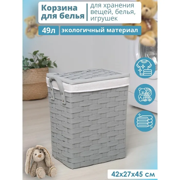 Корзина для белья Доляна «Плетение», с крышкой, 42×27×45 см, серая