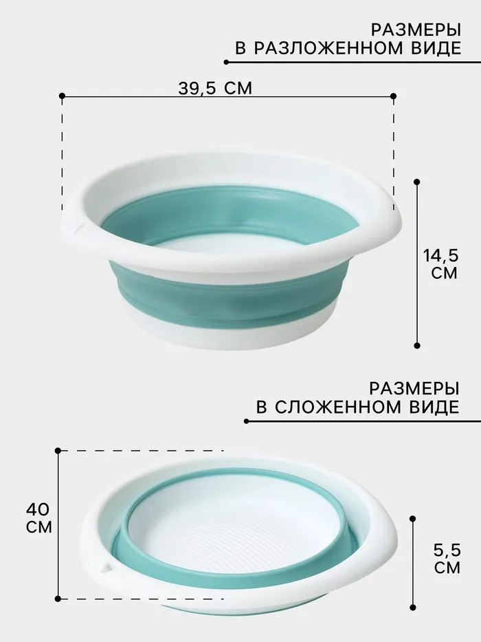 Таз складной «Флекс», 10 л, 39.5×40×5.5 см, морская волна