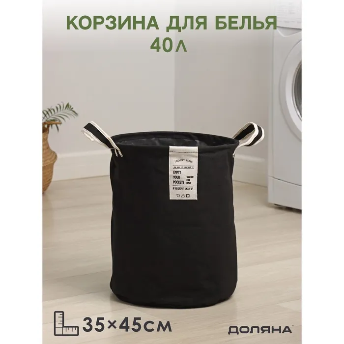 Корзина для белья Доляна Laundary, 35×45 см, чёрная