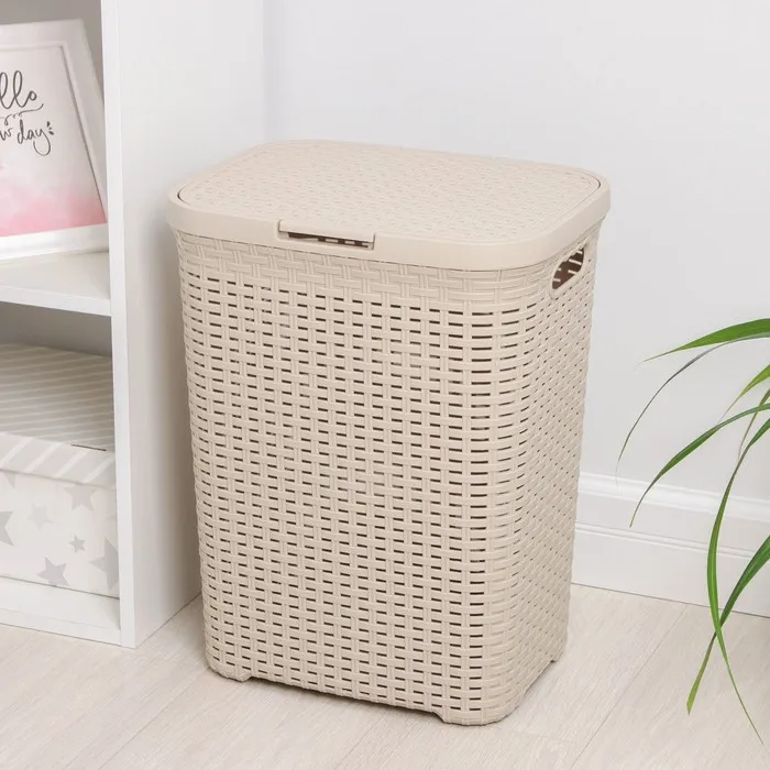Корзина бельевая «Ротанг», 40 л, 37×29,5×48 см, с крышкой, цвет латте