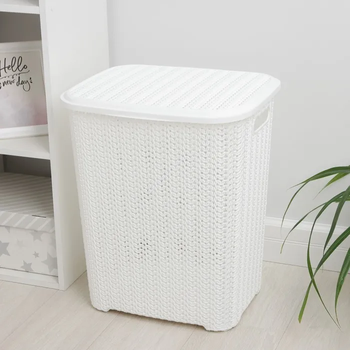 Корзина бельевая «Вязь», 60 л, 44×36×52 см, с крышкой, белая