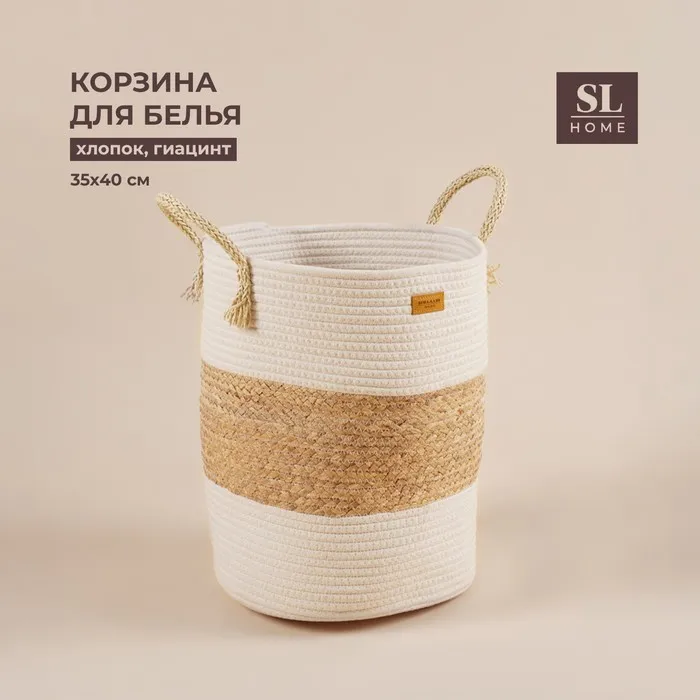Корзина для белья плетеная круглая SL Home Orden, 35×40 см, хлопок, гиацинт
