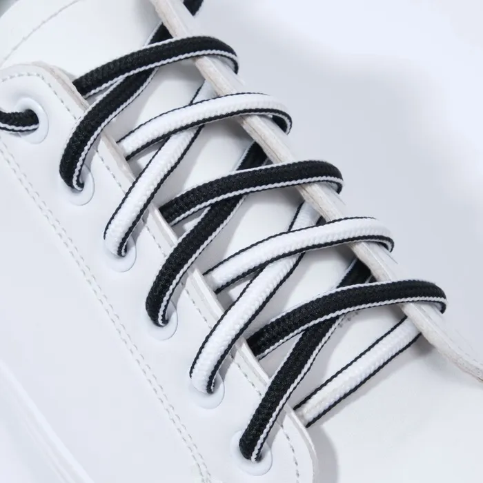 Шнурки для обуви, пара, круглые, d=5 мм, 90 см, чёрные/белые