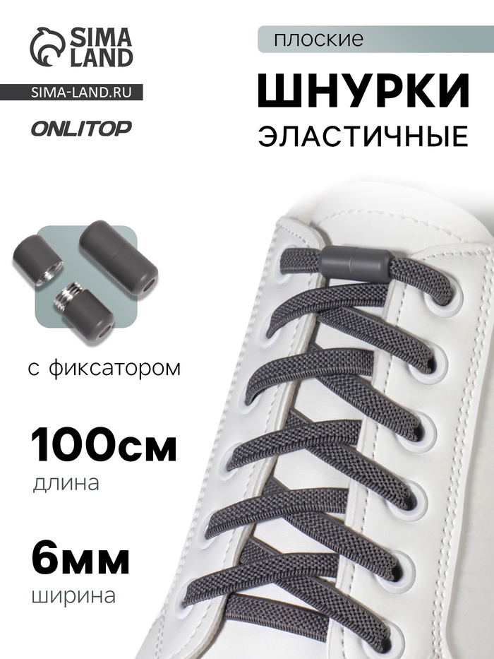 Шнурки для обуви, пара, плоские, с фиксатором, эластичные, 6 мм, 100 см, серые