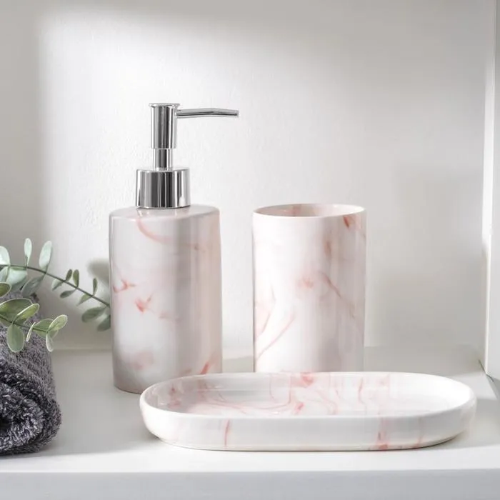 Аксессуары для ванной «Сила», 3 предмета: мыльница, дозатор для мыла 350 мл, стакан, персиковый