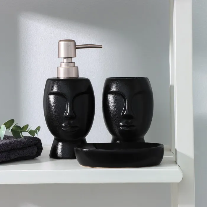 Аксессуары для ванной SAVANNA «Вуду», 3 предмета, мыльница, дозатор для мыла, стакан, чёрные