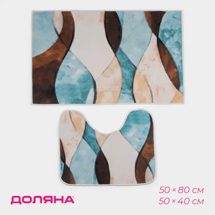 Коврики для ванной и туалета Доляна «Воля», 2 шт., 50×80 см, 50×40 см, форма МИКС