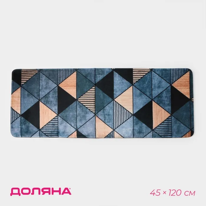 Коврики для дома Доляна «Геометрик», 2 шт., 45×120 см, 40×60 см, зелёно-серые