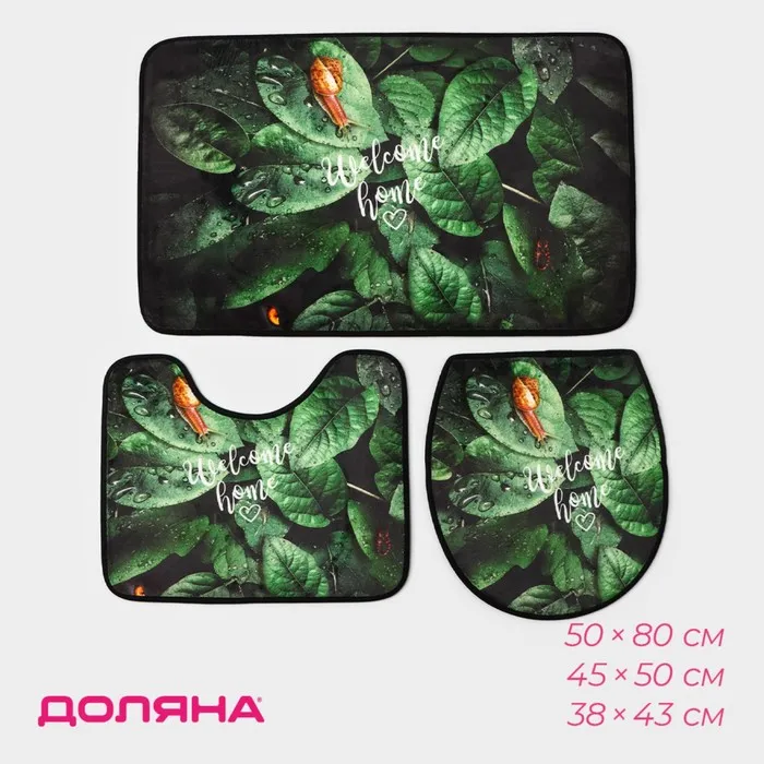 Набор ковриков для ванны и туалета Доляна «Тропики», 3 шт., 50×80, 45×50, 38×43 см
