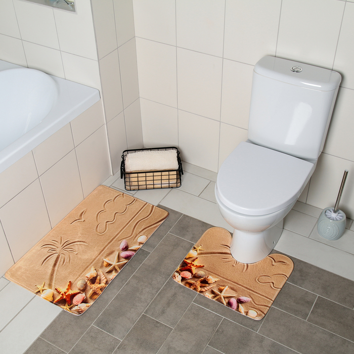 Набор ковриков для ванной и туалета «Доляна. Пляж», 2 шт., 40×45, 45×75 см