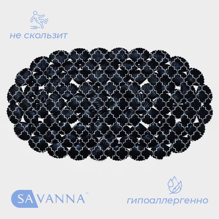 Коврик противоскользящий в ванну SAVANNA «Марокко», на присосках, 37×68 см, чёрный