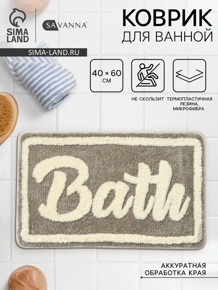 Коврик для ванной и туалета SAVANNA Bath, 40×60 см, бежевый