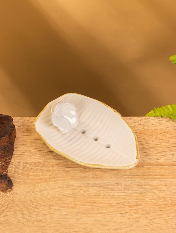Мыльница «Флора», 14×9.5×4 см, керамика, бежево-белая