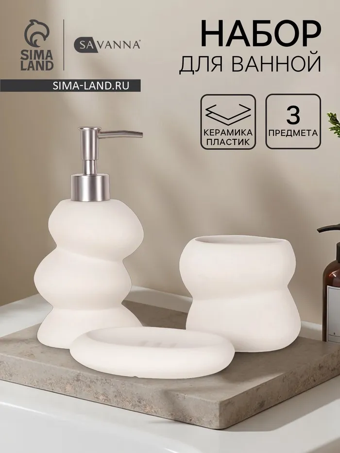 Набор для ванной SAVANNA «Мено», 3 предмета, дозатор для мыла, стакан, мыльница