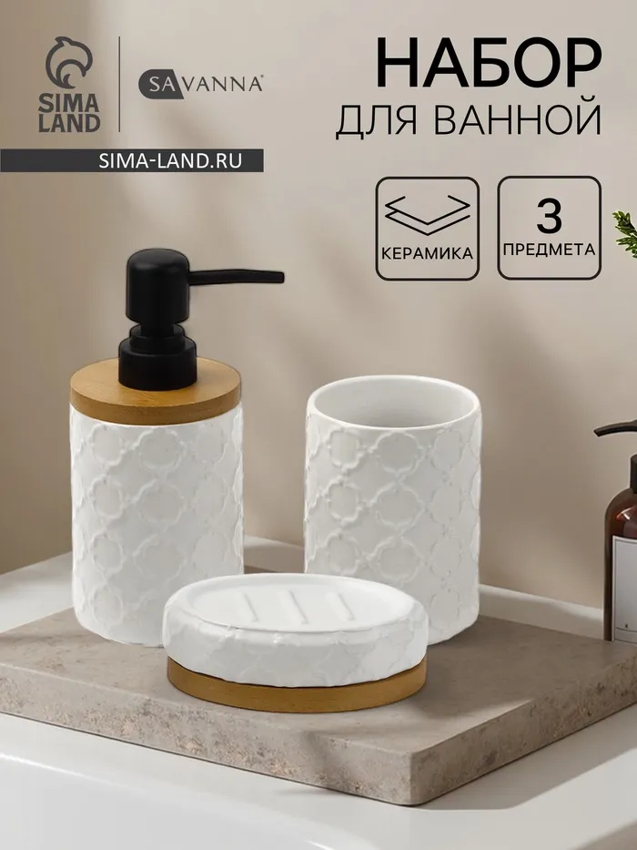 Набор для ванной SAVANNA Modern, 3 предмета, дозатор для мыла, стакан, мыльница