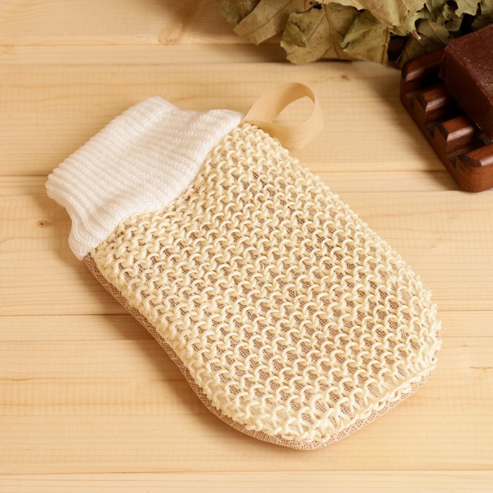 Мочалка - варежка массажная «Рукавица», сизаль, 22×13 см