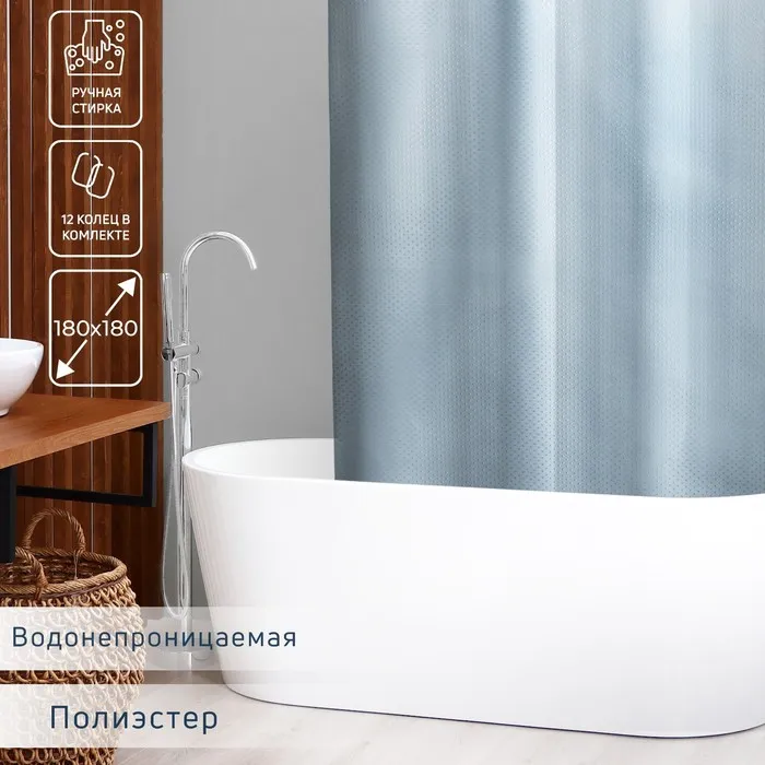 Штора для ванны Доляна «Полоска», 180×180 см, полиэстер, голубая