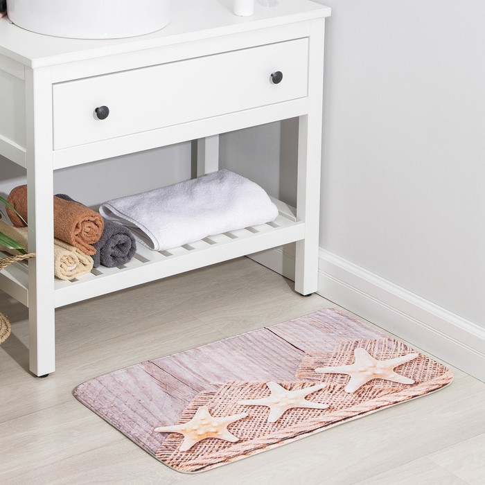 Коврик для ванной «Доляна. Морские звёзды», 74×44 см