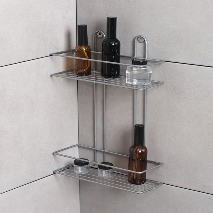 Полка для ванной угловая 2-х ярусная, 20.5×20.5×31.5 см, чёрная