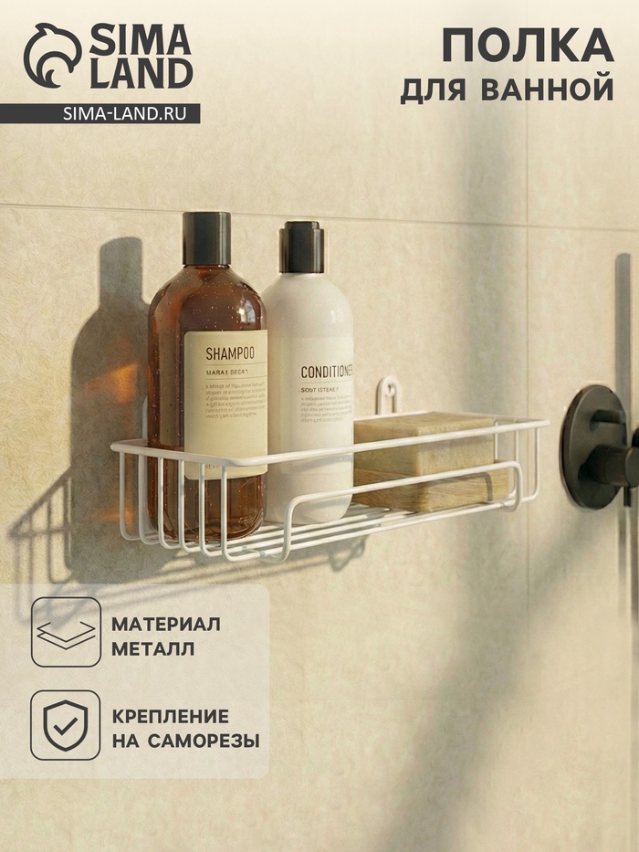 Полка для ванной прямоугольная, 2-х ярусная, 29×12.5×30 см, белая