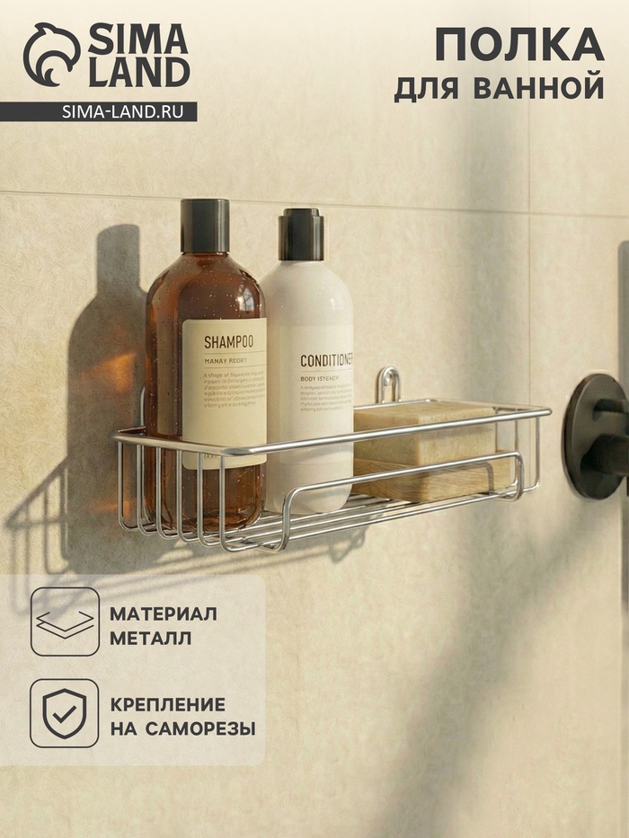 Полка для ванной Доляна, 2-х ярусная, 30×13×37 см, хромированная