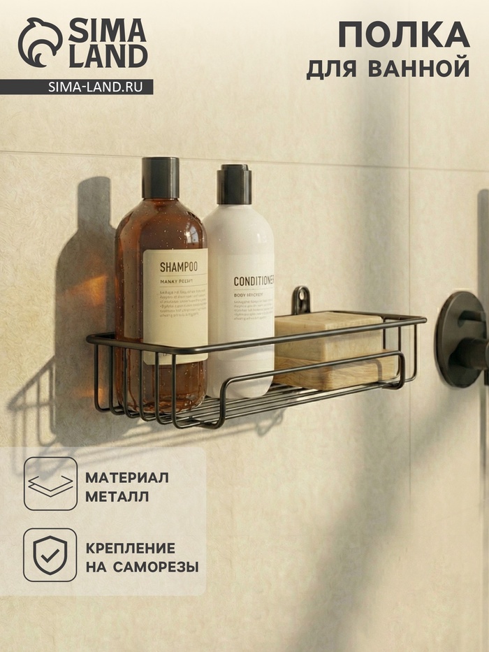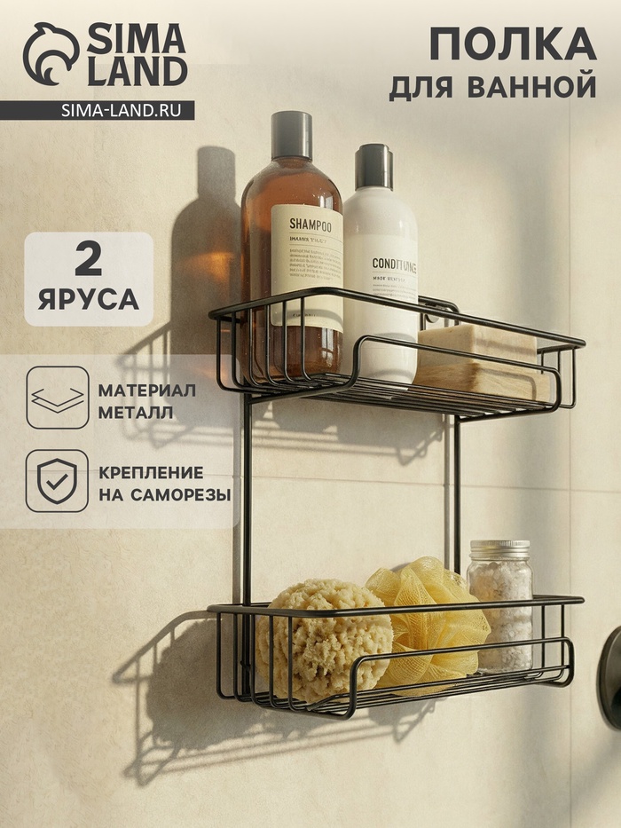 Полка для ванной прямоугольная, 2-х ярусная, 29×12.5×30 см, чёрная