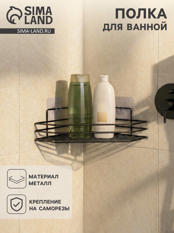 Полка для ванной угловая, 20.5×20.5×6.5 см, чёрная
