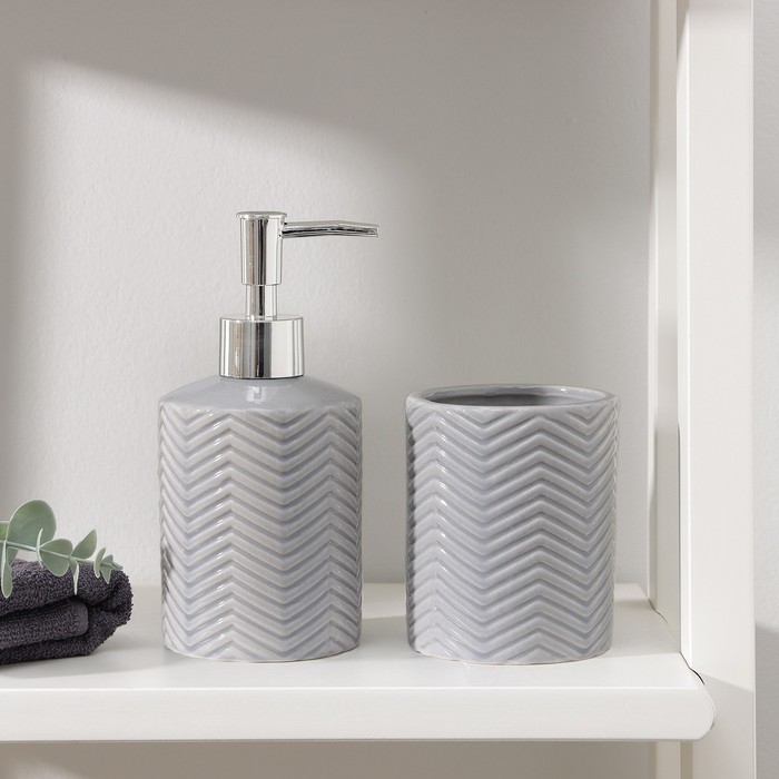 Аксессуары для ванной «Минимал», 2 предмета, дозатор для мыла 350 мл, стакан 350 мл, серые