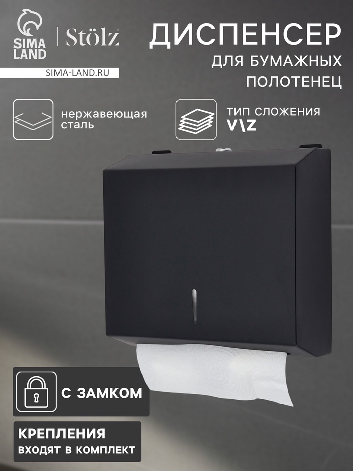 Диспенсер для бумажных полотенец в листах Stölz, 28.5×26.5×10 см, нержавеющая сталь, чёрный