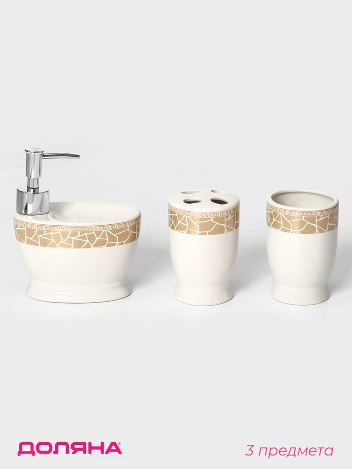Аксессуары для ванной Доляна «Мрамор», 3 предмета, дозатор с подставкой 550 мл, 2 стакана, белые