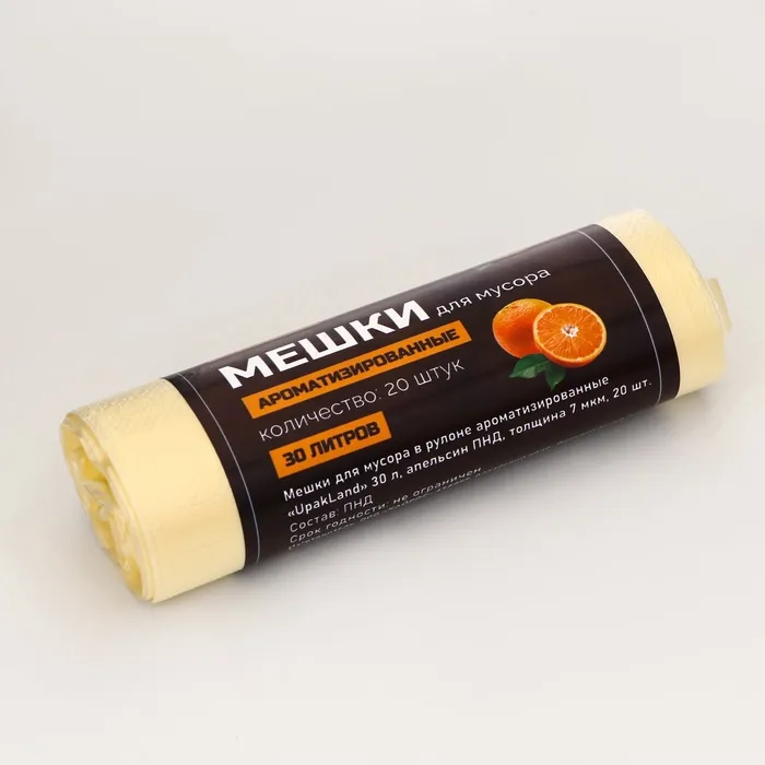 Мешки для мусора в рулоне ароматизированные UpakLand=30 л, АПЕЛЬСИН ПНД, толщ 7 мкм, 20 шт.