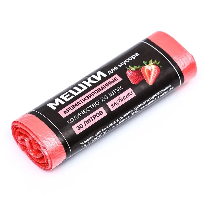 Мешки для мусора в рулоне ароматизированные UpakLand=30 л, клубника ПНД, толщ 7 мкм, 20 шт.