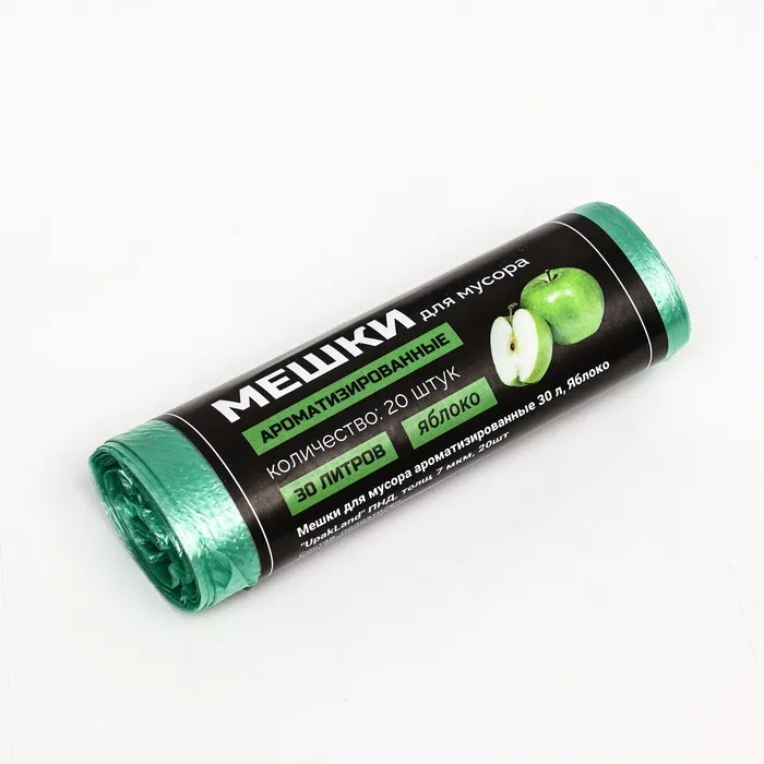 Мешки для мусора ароматизированные 30 л, Яблоко UpakLand ПНД, толщ 7 мкм, 20 шт.
