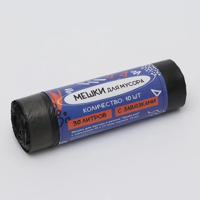 Мешки для мусора в рулоне UpakLand с завязками 30 л 25 мкм черные 10 шт.