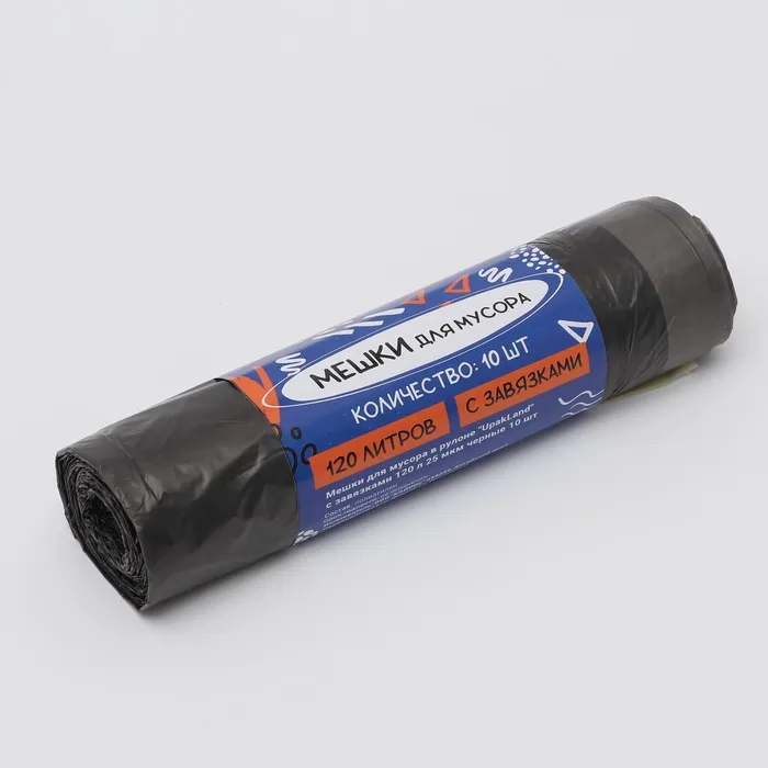 Мешки для мусора в рулоне UpakLand с завязками 120 л 25 мкм черные 10 шт.