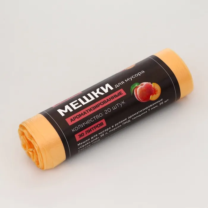 Мешки для мусора в рулоне ароматизированные UpakLand=30 л, ПЕРСИК ПНД, толщ 7 мкм, 20 шт.