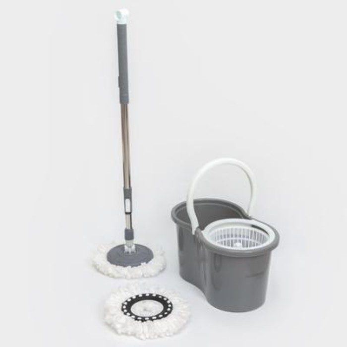 Швабра с отжимом и ведром Доляна, ведро с 2 отсеками 21×18×37, швабра 32×12×128 см, отсек 4 л, дополнительная насадка из микрофибры