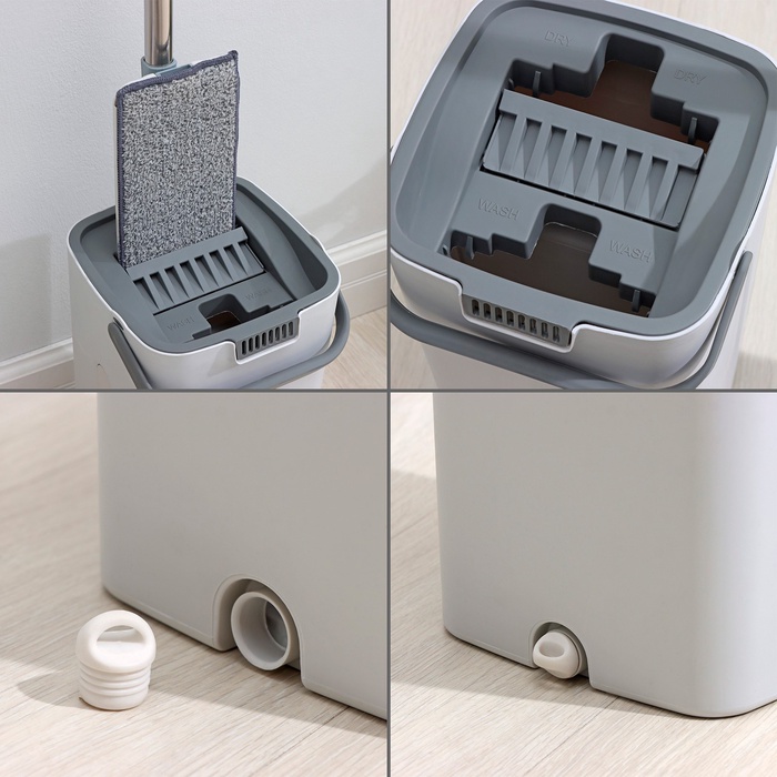 Швабра с отжимом и ведром Raccoon, ведро с отсеками, швабра плоская, 2 кармана, 32×12×142 см, дополнительная насадка из микрофибры