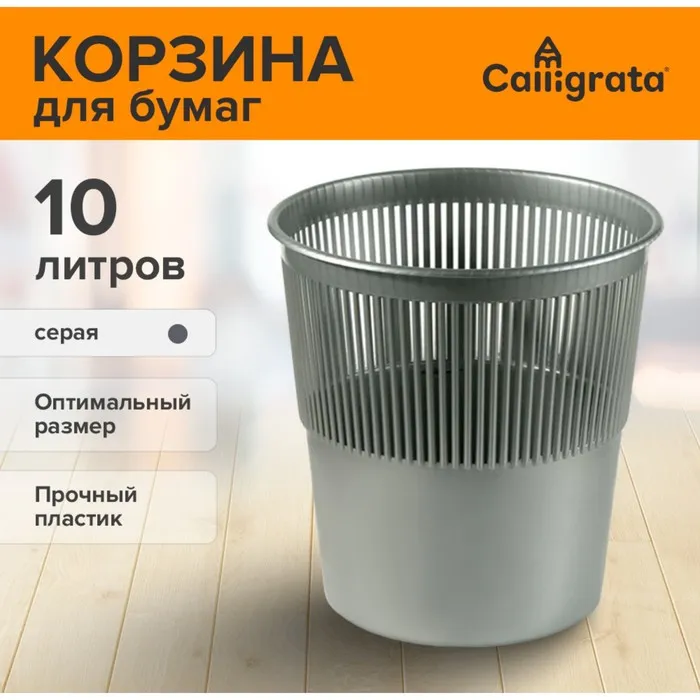 Корзина для бумаг и мусора Uni, 10 литров, пластик, сетчатая, серая