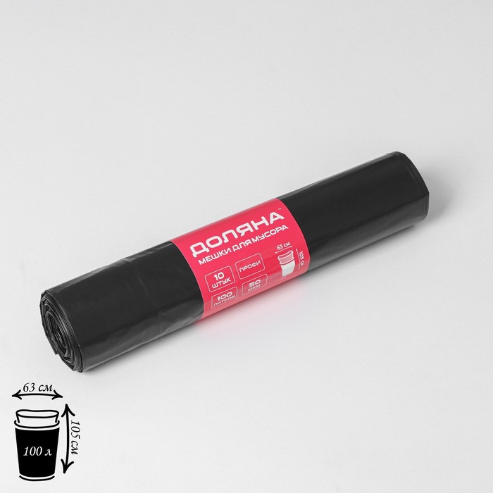Мешки для мусора Доляна «Профи», 100 л, 63×105 см, 50 мкм, ПВД, 10 шт., чёрные
