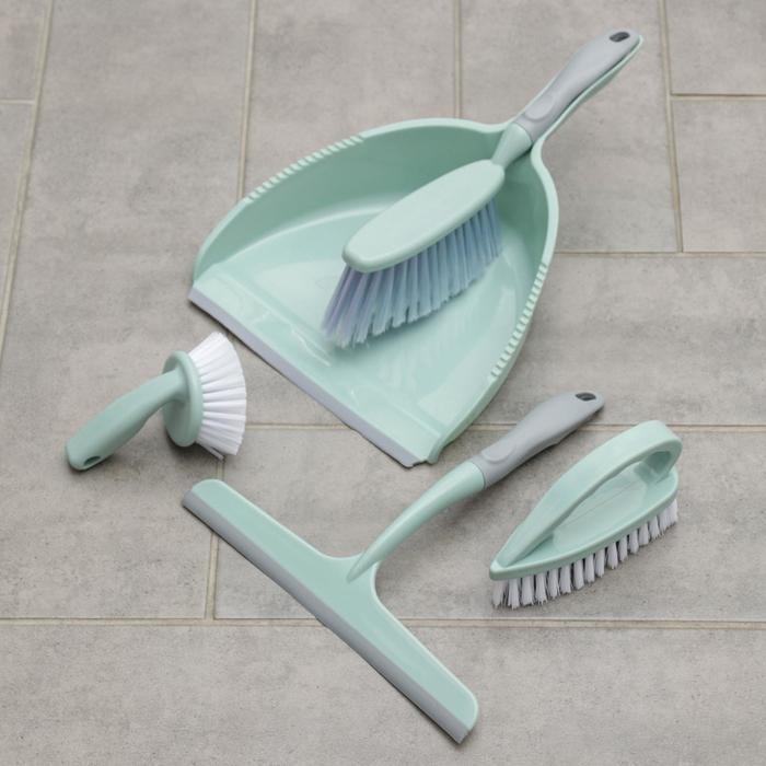 Щётки для уборки, набор из 5 предметов: совок, 3 щётки, водосгон, МИКС