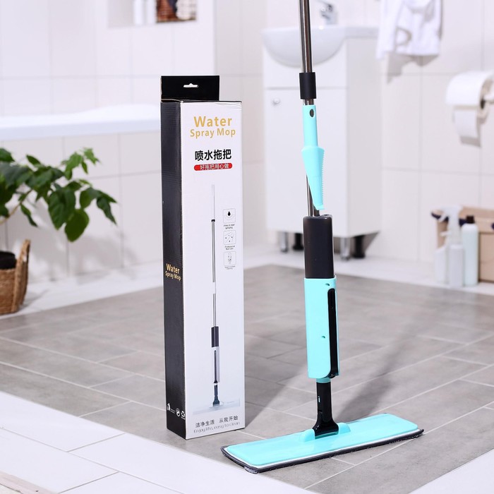 Швабра для мытья пола с распылителем и щёткой, насадка из микрофибры 41×14 см, стальной черенок 120 см, цвет голубой