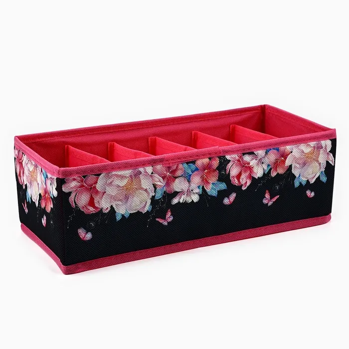 Органайзер для хранения, кофр для белья 6 ячеекк «Пионы», 32×15×10 см