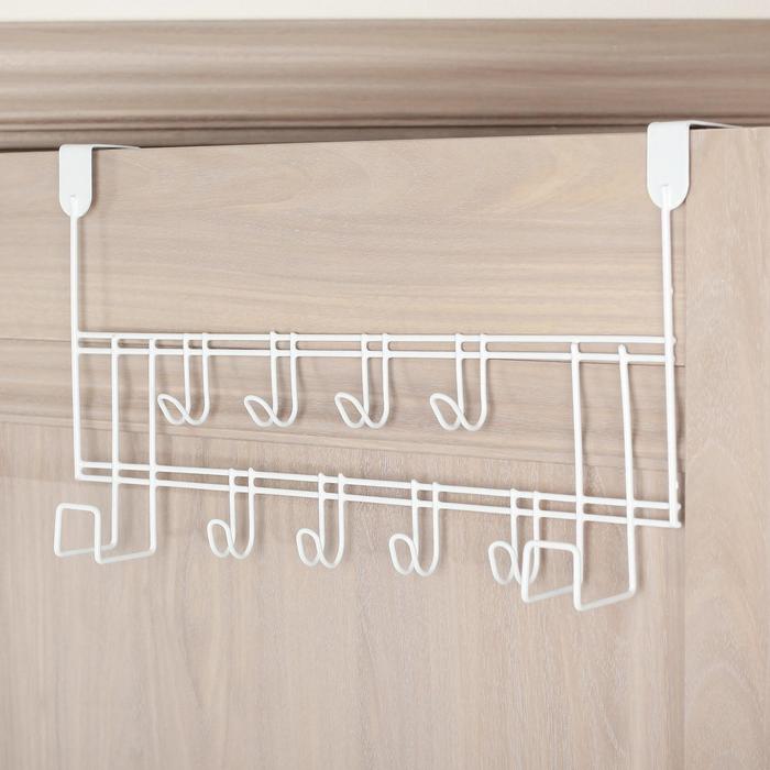 Вешалка на дверь на 8 крючков Доляна «Моно», 40,5×10×23 см, цвет белый