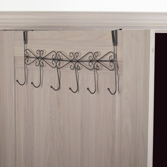 Вешалка на дверь на 6 крючков Доляна «Вензель», 47×22,5×10 см, цвет чёрный