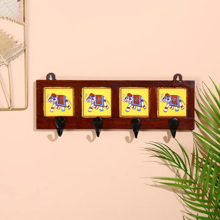 Вешалка "Караван"слоны, 22*4*12см, дерево, 4 крючка, цвет микс